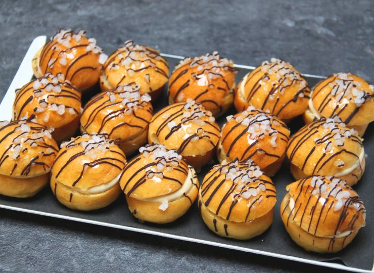 Briochettes garnies d’une ganache au caramel au beurre salé (façon tropézienne)