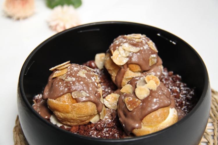 Profiteroles chocolat vanille (gluten, lactose, œuf)