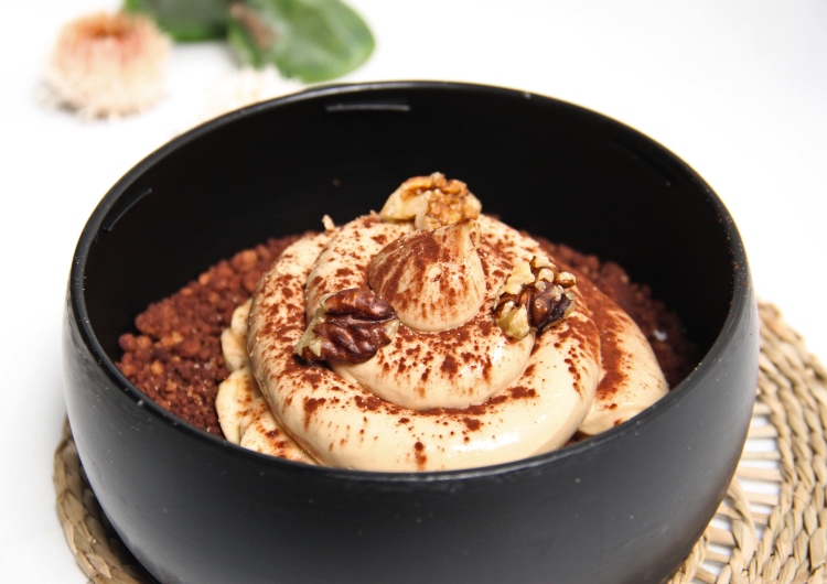 Banofee (banane, chocolat dulcey, crumble chocolat et muscade) (gluten, lactose, soja, fruits à coque)