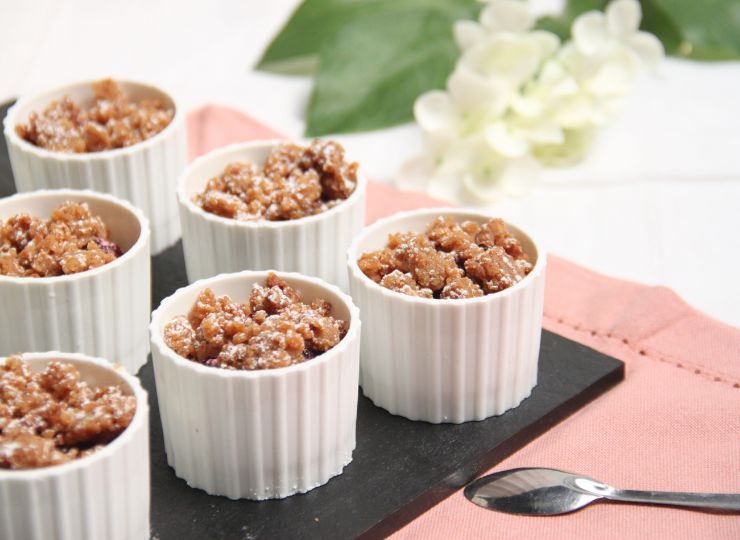 Panna cotta de pain d’épices, compotée de fruits des bois, crumble breton – Le plateau de 10 verrines